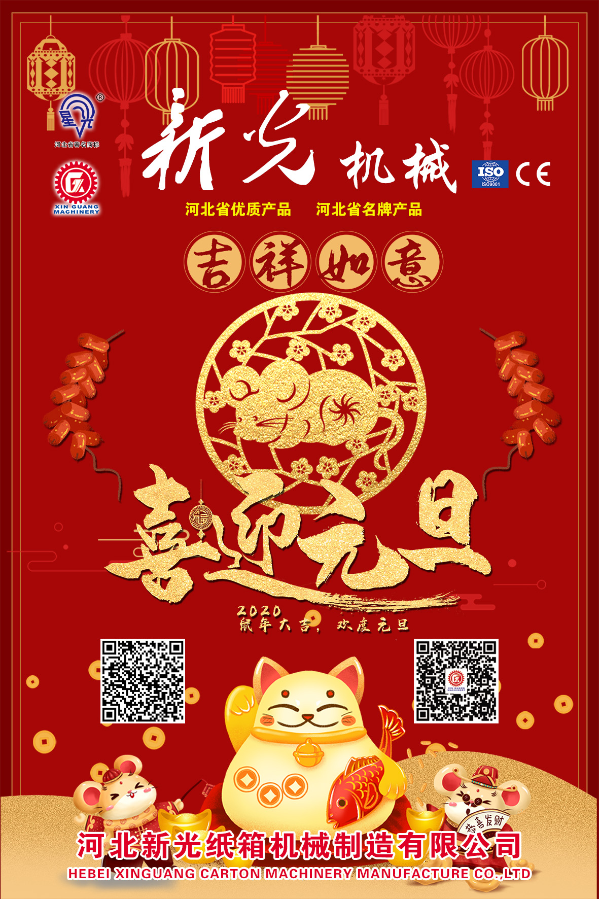2020新的一年新的氣象,河北新光紙箱機械制造有限公司全體員工恭祝廣大客戶新年快樂,生意興隆,財源廣進,恭喜發(fā)財。
